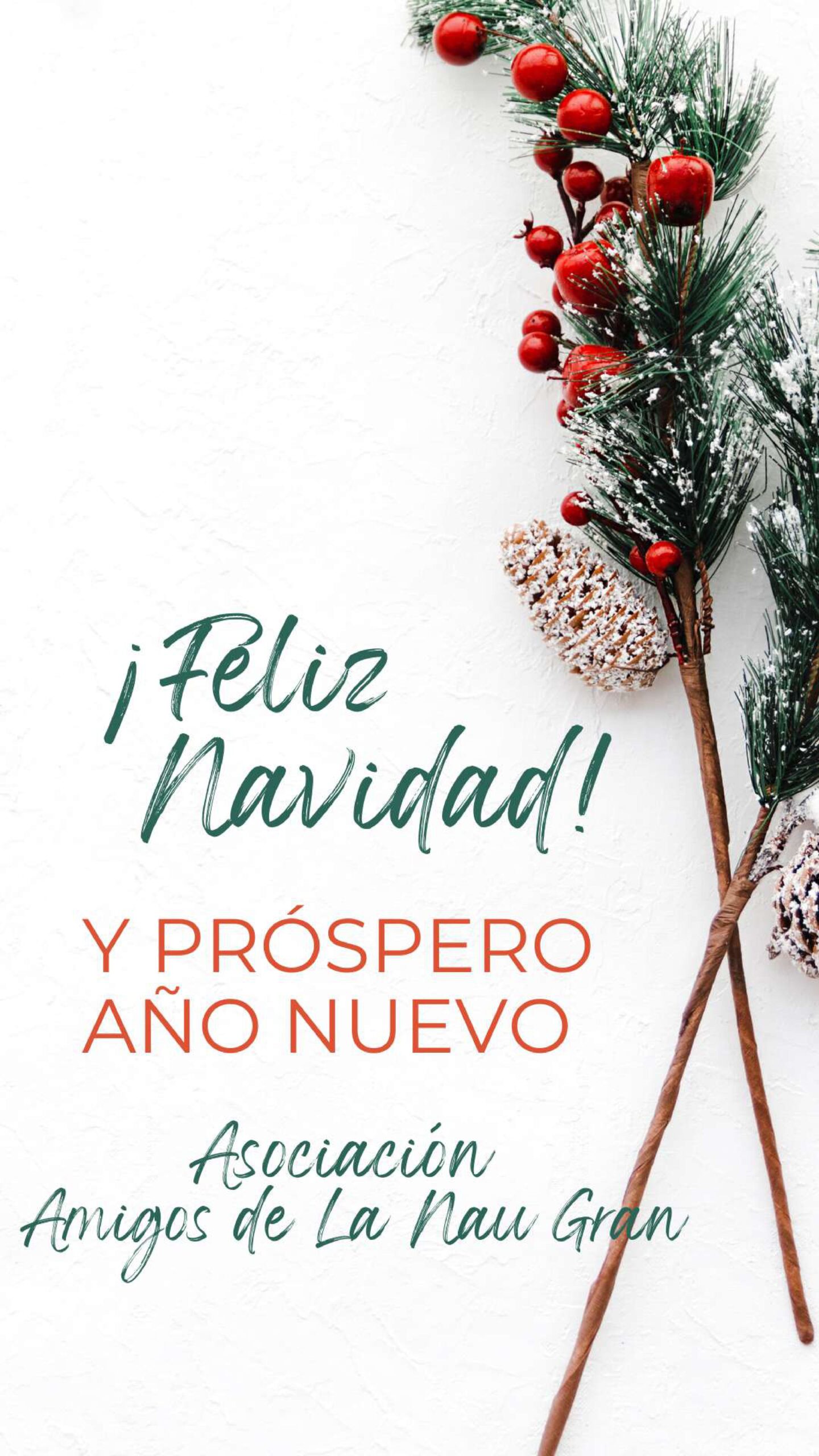 Estimad@s soci@s, desde la Asociación Amigos de La Nau Gran, queremos desearos que paséis unas ¡Felices Fiestas! . Os informamos que, con motivo de las fiestas navideñas, la oficina de la Asociación permanecerá cerrada desde el 23 de diciembre hasta el 6 de enero, ambos inclusive. Estimad@s soci@s, des de l’Associació Amics de La Nau Gran, volem desitjar-vos que passeu unes Bones festes! Us informem que, amb motiu de les festes nadalenques, l’oficina de l’Associació romandrà tancada des del 23 de desembre fins al 6 de gener, tots dos inclusivament.