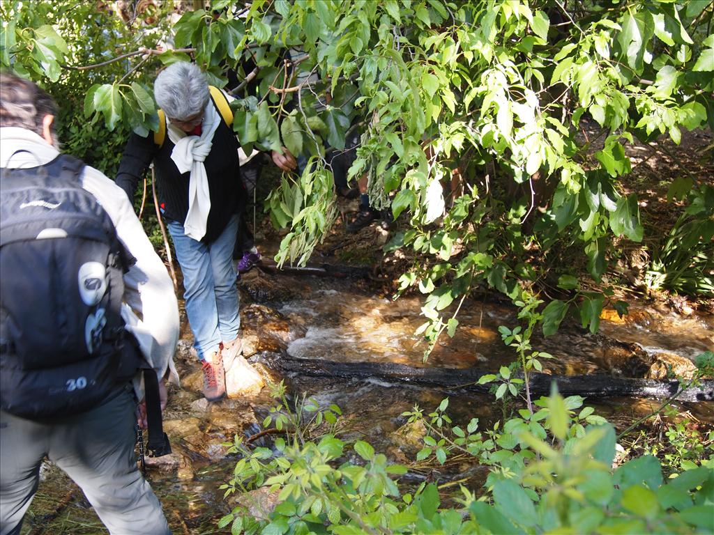 Fue divertido, además, porque hubo que pasar el arroyo con bastante agua y las piedras y maderos que hacían de puente no eran muy firmes que digamos. Más de uno se quitó las botas y pasó descalzo. El amigo Juan, metido en el arroyo, ayudó a los que no lo tenían claro.