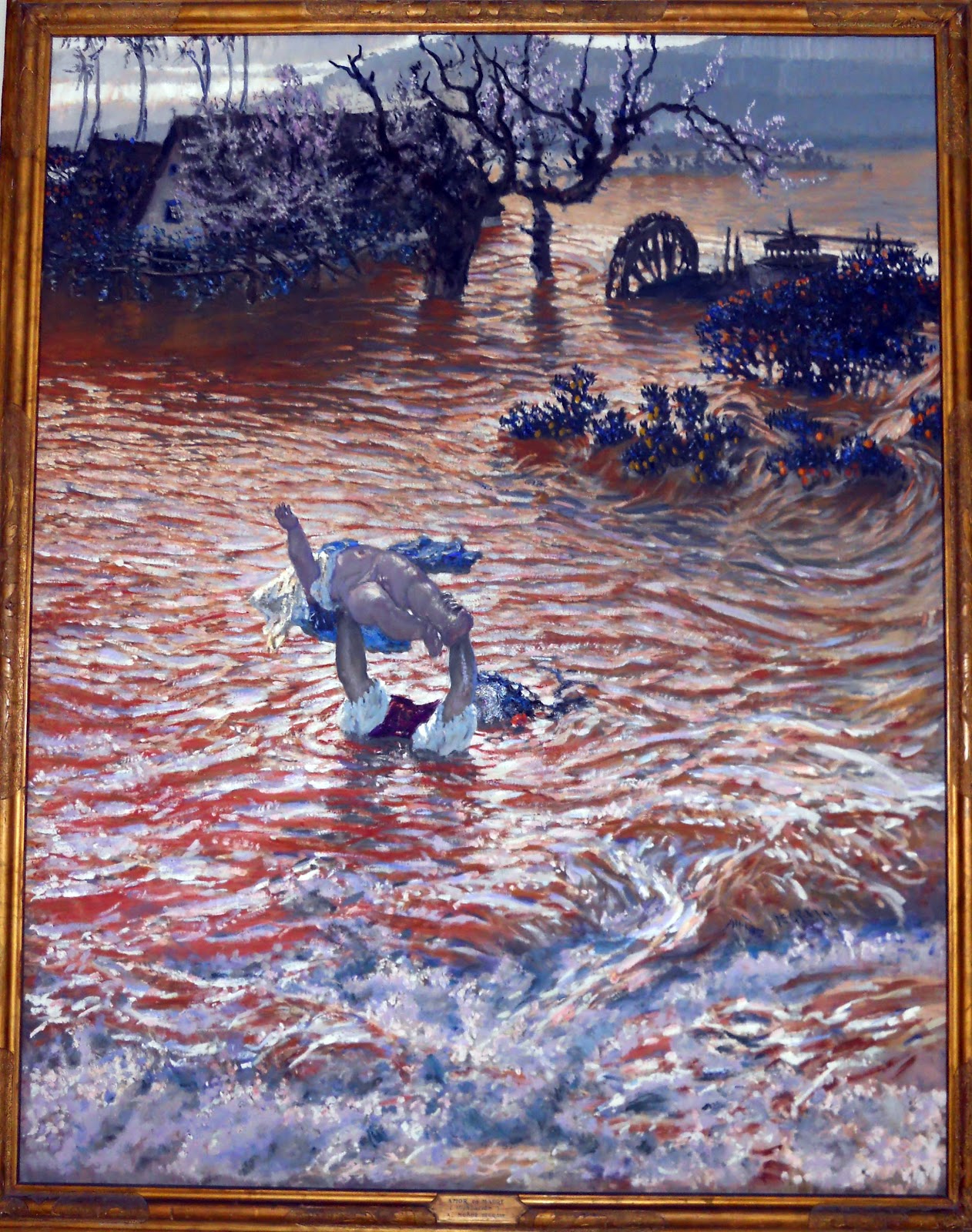 Pero la más hermosa es Amor de madre. Este cuadro lo recuerdo como uno de los que más me impresionaron la primera vez que visite el Museo. Recordareis que estaba en una planta poco iluminada, pese a su oscuridad, trasmitía ese intento de salvación en una riada, como las que hemos vivido en nuestra ciudad, ese amor que solo siente una madre. Es un paisaje tan realista que aunque lo contemples muchas veces lo vives.