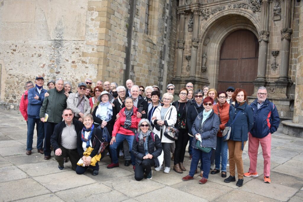 El primer día de mayo partimos temprano desde la estación del AVE, un grupo de 41 personas con destino a Plasencia. Un viaje cuya inscripción se completó en apenas 10 minutos ¡increíble!. En Madrid nos esperaba un autobús que nos llevó a Candeleda, donde comimos. Una villa fronteriza con Ávila, Toledo y Cáceres. En sus terrenos creó Alfonso XIII el Coto Real de Gredos donde abunda la cabra montesa que es el emblema de la población. Dimos un paseo para conocer esta antigua localidad que fue paso de la trashumancia de Extremadura a Castilla. Vimos la iglesia, el Ayuntamiento, una llamativa casa cuyos balcones están repletos de flores y alberga un museo de juguetes de hojalata. Por sus calles corren riachuelos de agua cristalina.
