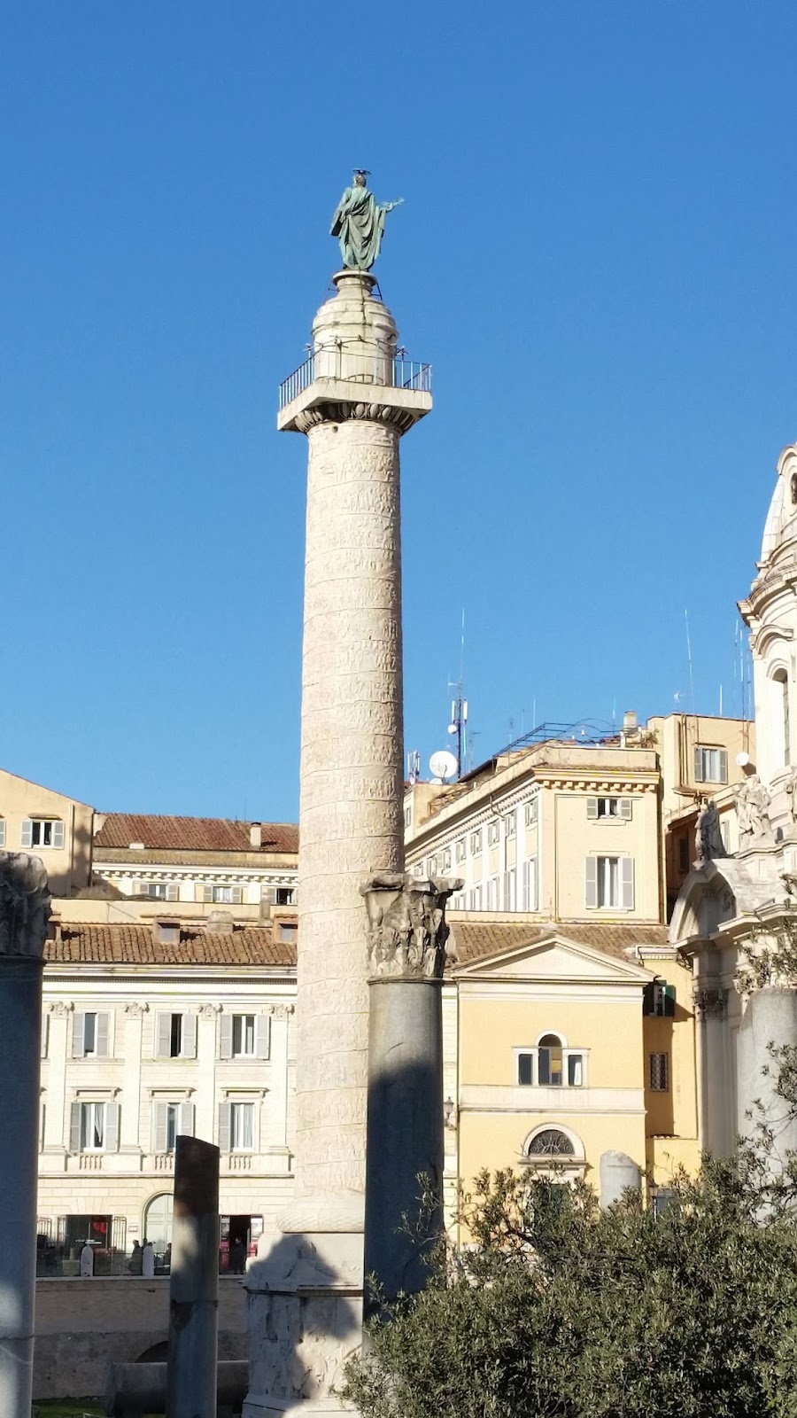 Foro, columna y tiendas de Trajano; fuente de Trevi (imposible acercarse al