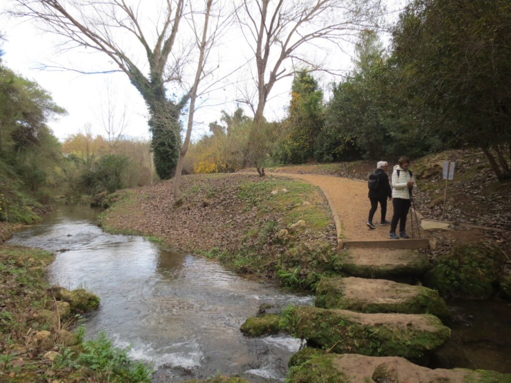 El recorrido cuenta con piedras sobre el río para pasar sobre él.