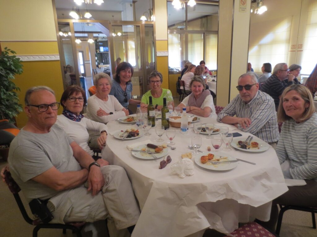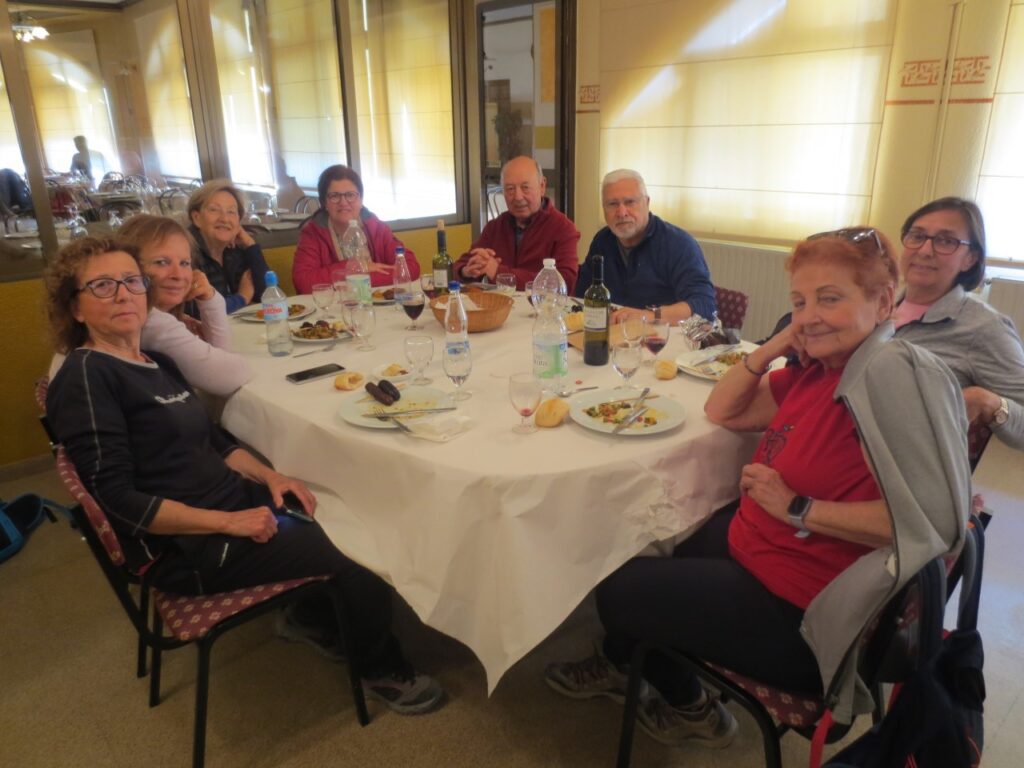 Comimos en el restaurante Tuéjar, que abrió para nosotros, pues éramos los únicos clientes. Nos atendieron muy bien, había agua y vino en las mesas, la comida buena y abundante. El problema es que nuestros estómagos no están para tanto embutido y la mayoría nos dejamos gran parte del plato principal.