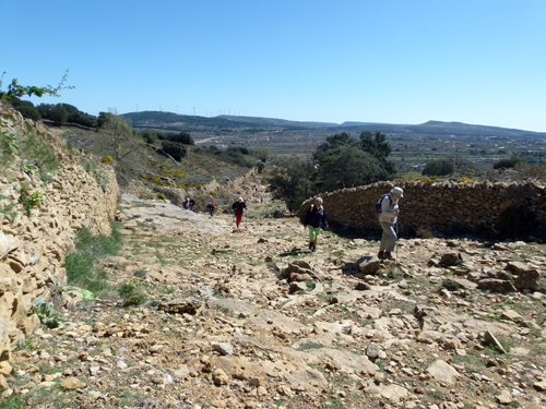 Empezó la caminata en la Font de Llosar, a las afueras de Vilafranca. Por un camino labrado en las piedras por millones de ganados y que nos conducen al Pi del Comunet.