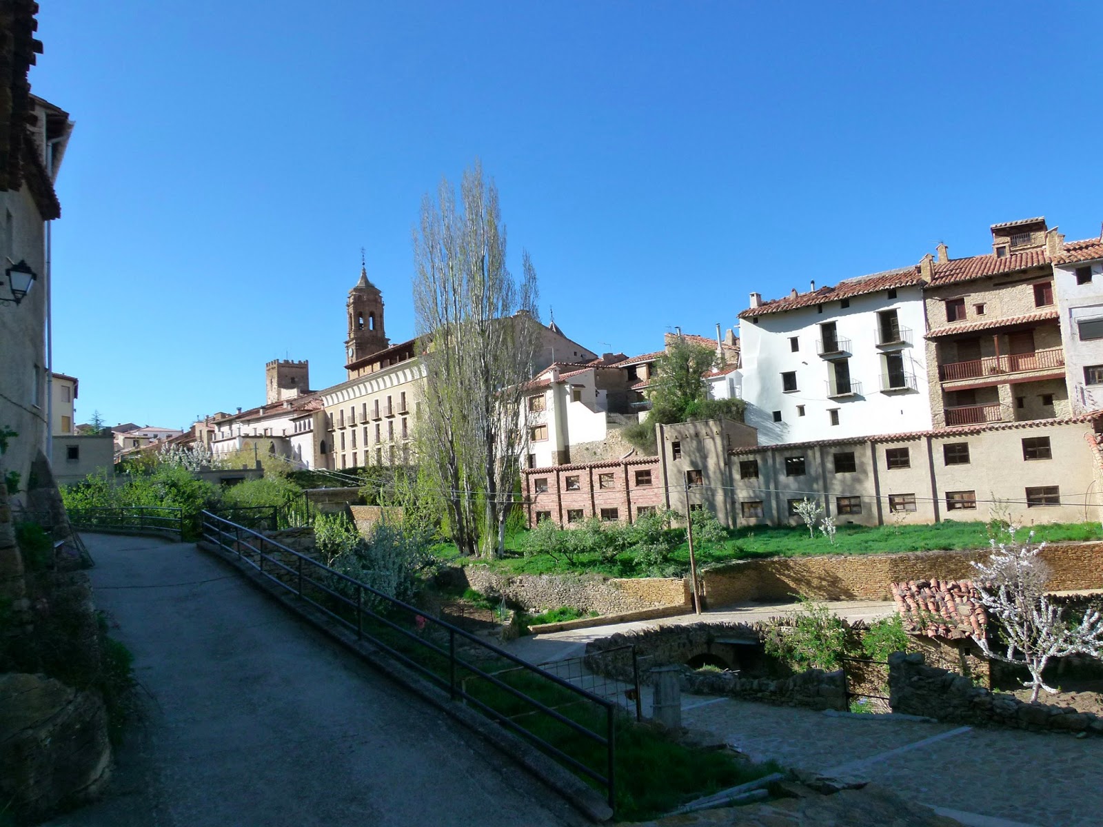 Cambiamos los planes por no encontrar un sendero viable y decidimos subir a la Iglesuela del Cid saltando vallas y con el tintineo no muy lejano de ganado vacuno, no supimos si era bravo.