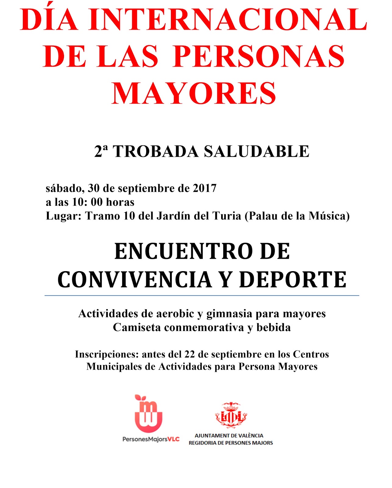 El día 30 la Trobada Saludable en el cauce del río, organizado por el Ayuntamiento de València y al que se puede inscribir desde el despacho de nuestra asociación hasta el día 22 de septiembre.