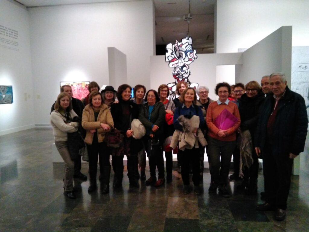 Desafiando las inclemencias metereológicas, este grupo de  «aguerridos compañeros» se  desplazó a disfrutar de la visita a la exposición, acompañados e ilustrados por   Paca Mompó.